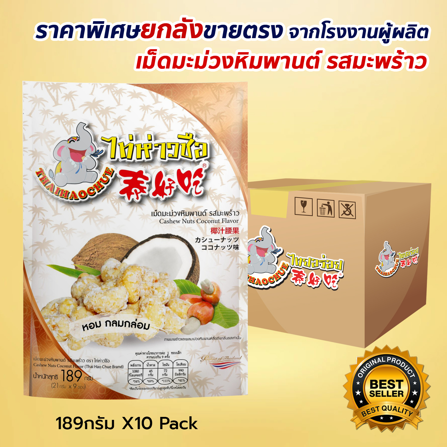 泰好吃 椰子腰果 189g. 10 包/箱