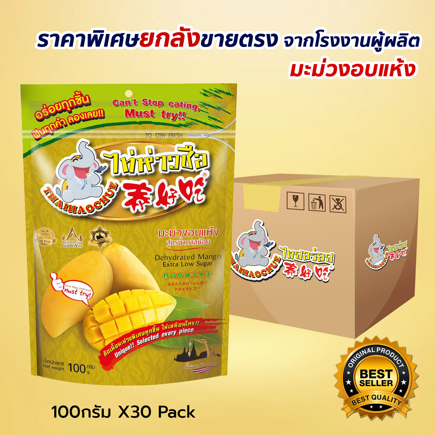 泰好吃 芒果干 100g. 30 包/箱
